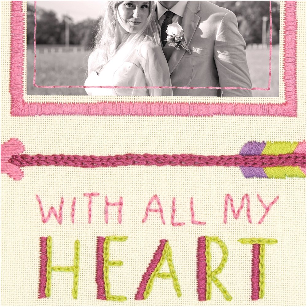 Completed All My Heart Wedding embroidery measures 8β L x 8β W.